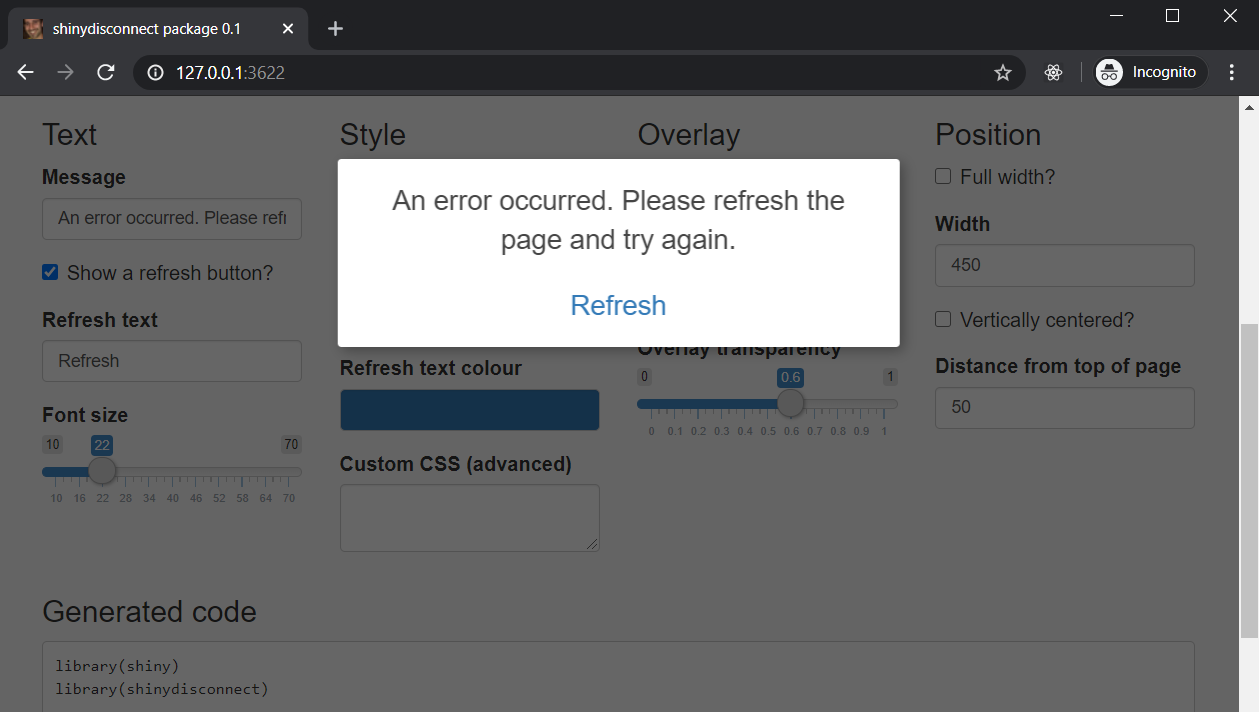 Well, at least you didnโt until now. {shinydisconnect} solves exactly these two issues, by allowing you to show a customized (and pretty!) message when a Shiny app disconnects or errors, regardless of where the app is running.